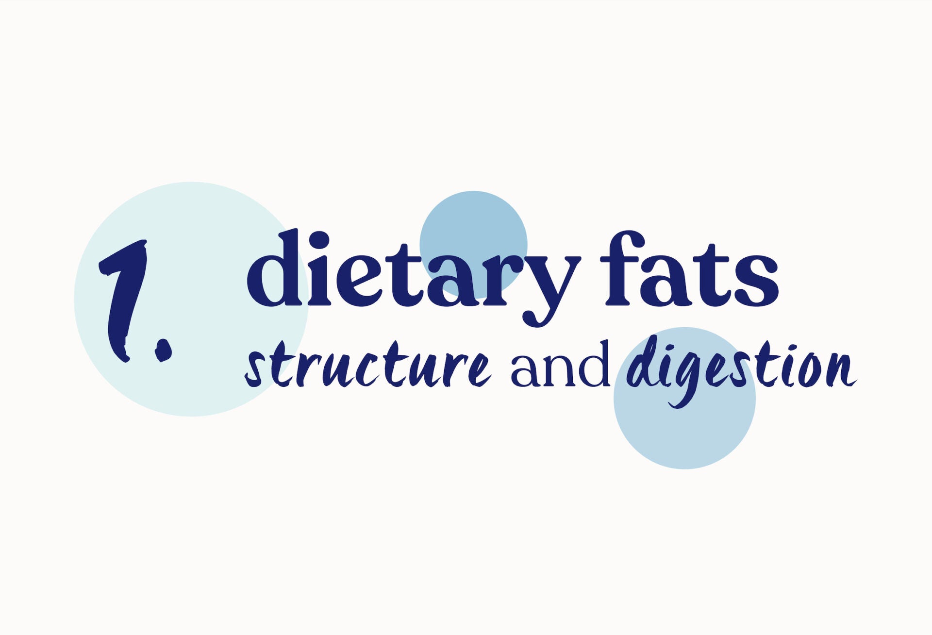 The main dietary fats are triglycerides, which consist of three fatty acids and a glycerol backbone. These fatty acids are either saturated or unsaturated, dependent on the number of double bonds, and this, along with the configuration of the double bonds, determines the behaviour of the fat. Digestion of fats requires a series of lipoproteins that enable insoluble fat to be transported and transferred to tissues for storage or further breakdown. Certain lipoproteins are considered pro-atherogenic, such as Low-Density Lipoprotein (LDL), so the amount of these in the blood is important when it comes to health and this is impacted by factors such as saturated fat intake.