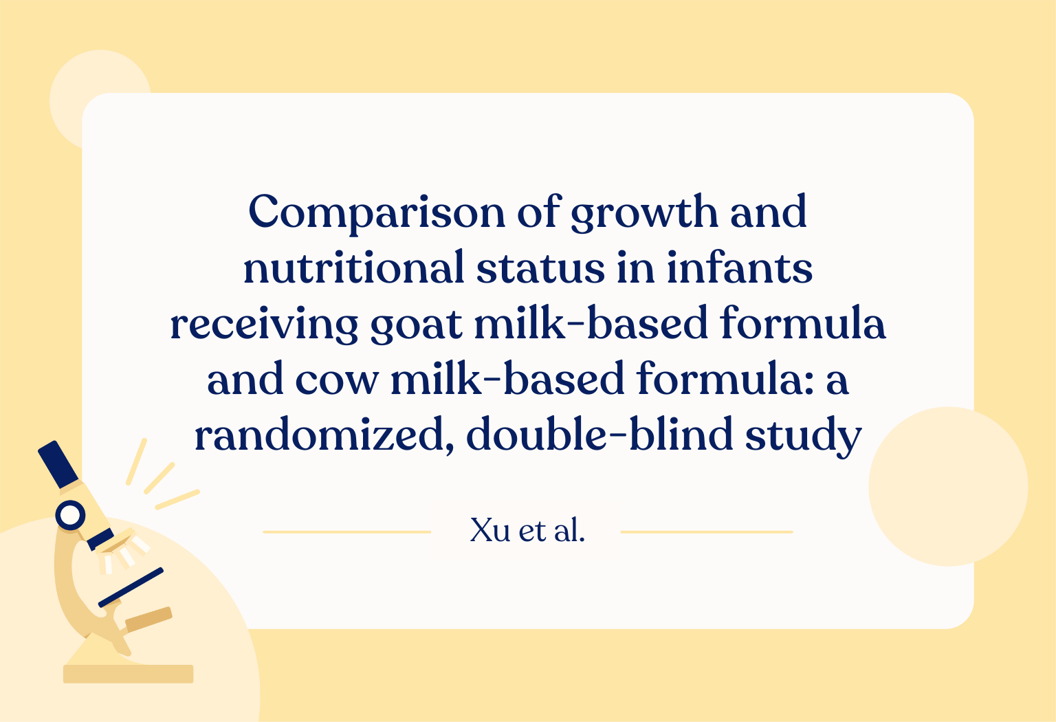 This was a single site study conducted in Beijing, China. Infants were deemed eligible for inclusion if they were the mother’s first child, full term, and a normal birth weight. A total of 79 infants aged between 0 and 3 months were included and randomised to receive either goat’s milk-based formula or cow’s milk-based formula. 39 infants received the goat’s milk-based formula and 40 received the cow’s milk-based formula. Both formulas were manufactured and provided by Ausnutria Hyproca Dairy Group BV. Parents and guardians were asked to feed the infants their allocated formula from when they were enrolled until 6 months and the formula was provided for free as part of the trial. Weight, length and head circumference were measured at the time of enrolment, 3 months and 6 months. At these visits parents and guardians also took part in a structured interview to investigate whether their infant had experienced any health problems, including respiratory problems, gastrointestinal problems, reflux, infection, fever, urinary tract infection, and thrush. The number of unused sachets of formula were recorded during the visits to determine how much formula the infants were receiving. Nutritional blood markers such as calcium levels were measured as a reflection of the nutritional status of the infant. Adverse events (unexpected medical events) in this study included any illness or clinically significant laboratory test abnormality. 79.5% of infants allocated to goat’s milk-based formula consumed a sufficient amount of the study formula, and this was 85% in the cow’s milk-based formula group. This was not significantly different, indicating there was no difference in how likely parents were to stick to the feeding regime based on which formula they were giving their infants. Further, there were no differences in the timing at which solid foods were introduced between the two formula groups. Blood calcium levels were slightly lower in infants fed with the goat’s milk-based formula. This can likely be attributed to the higher level of calcium in the cow’s milk formula, and the value was still in the normal range so therefore does not indicate a deficiency. There were no differences in the other blood nutritional markers and they were in the normal ranges for both formula groups. There were no differences in the risk of a health condition or event between infants who received goat’s milk formula and cow’s milk formula at 6 months. There was no difference in weight, length, head circumference, and BMI between the two formula groups across the 6 months. From interviewing the parents, it was deemed that there were no group differences in bowel motion consistency, duration of crying and ease of settling, indicating the infants tolerated the goat’s milk-based formula well. This study has replicated the results of two previous studies confirming the use of goat’s milk infant formula results in normal growth. Growth, blood nutritional markers, and health status were comparable in infants who received goat’s milk-based infant formula to that of infants who received cow’s milk-based infant formula. Therefore, the safety and tolerability of goat’s milk-based infant formula did not appear to differ from cow’s milk-based formula. There are some potential risks which require further investigation, such as specific allergy to proteins in goat’s milk and the differences between allergenicity in goat’s milk and cow’s milk infant formulas. A bigger group of infants is needed to test this, as allergy is not common enough to test in a small population. This study was also limited by the recruitment of infants up to three months old, as infants may have received a cow’s milk formula or been breastfed before they were enrolled in the trial. A study provided goat’s milk formula from birth may provide different outcomes. Other potential advantages are worth further investigating, such as beneficial effects on the gut microbiota. The microbiome composition seen to develop in those fed goat’s milk formula appears to be more similar to that of breast-fed infants than those fed cow’s milk-based formula4. Overall, goat’s milk-based formulas appear to be a suitable alternative to cow’s milk-based infant formula.References: