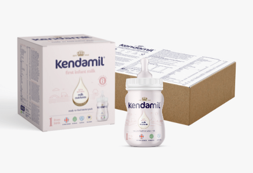 - Stage 1 Ready To Feed 70ml pre-packaged bottles, in starter packs of 6, alongside 6 pre-sterilised teats. (Available on our Kendamil website and soon in national retailers).